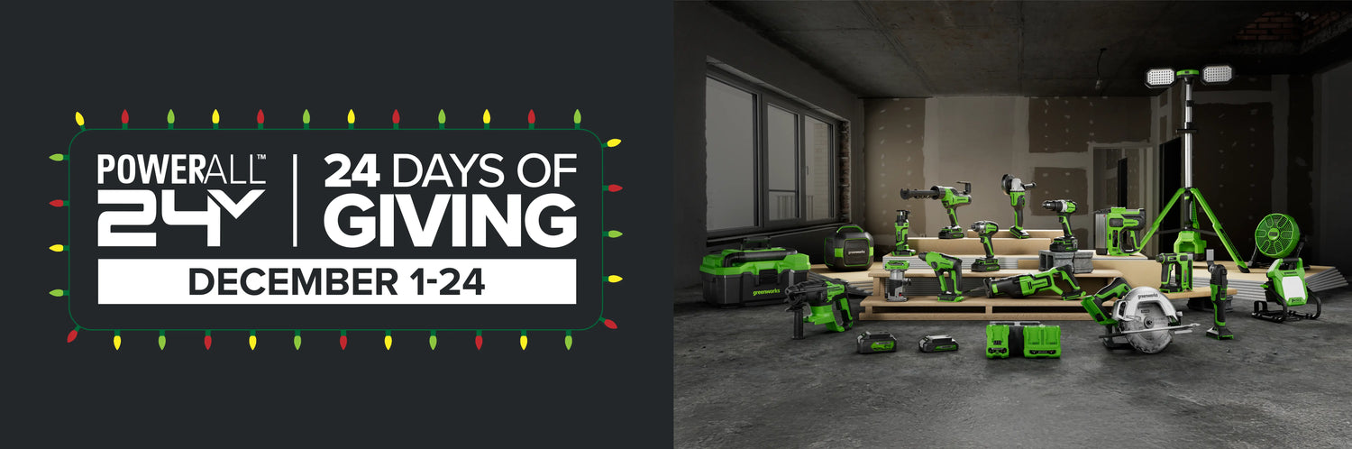 Celebrate the season with Greenworks! We’re giving away a POWERALL™ 24V tool every day in December. Tap the door to reveal today’s prize and enter to win.